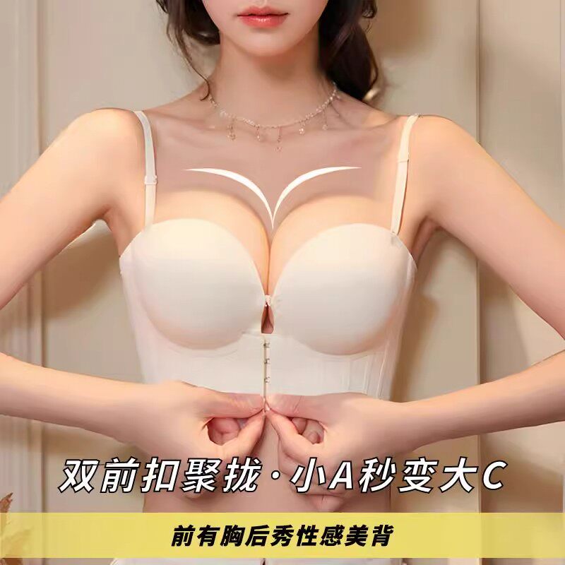 无肩带内衣婚纱伴娘专用防滑聚拢隐形小胸显大抹胸贴加厚前扣文胸