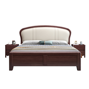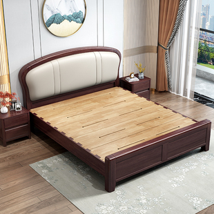 床实木床现代简约1.5m主卧家用橡木床架胡桃色1.8m全实木床双人床