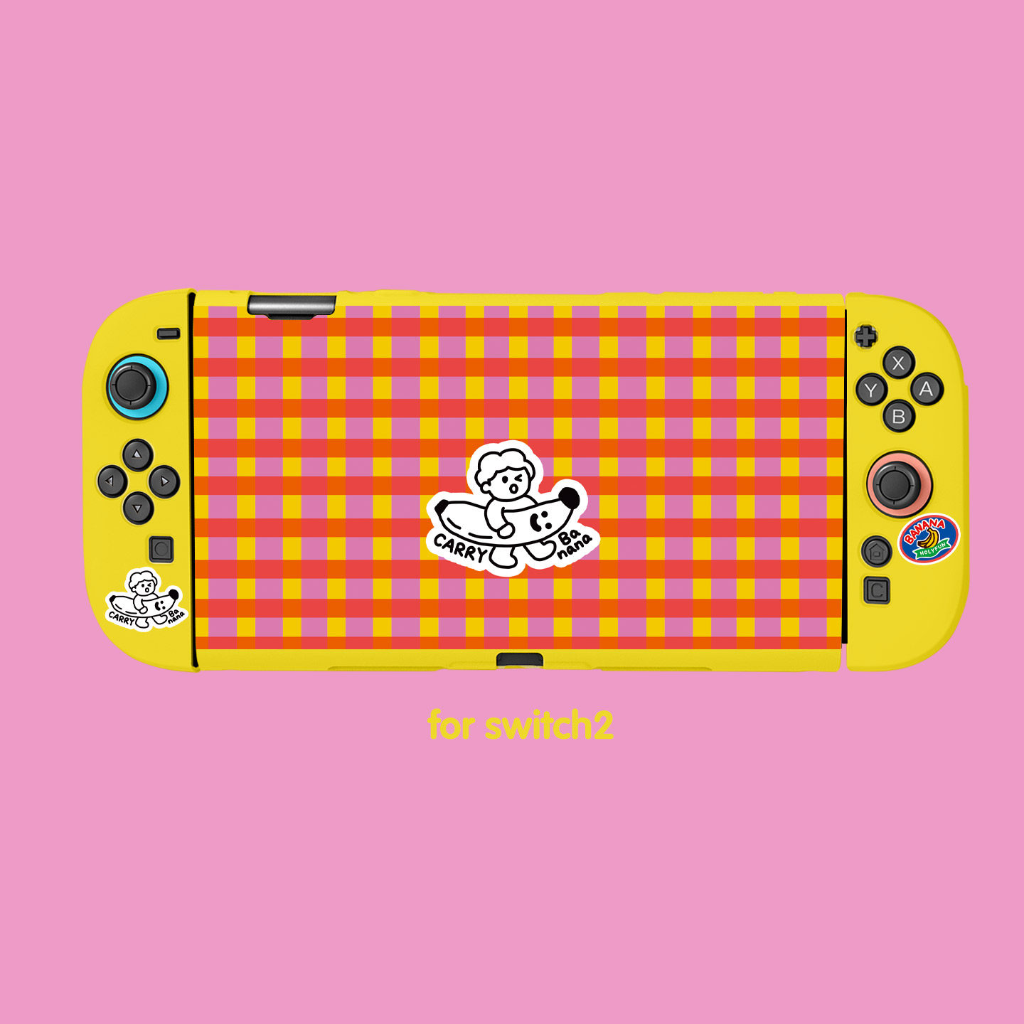 和风猫饭任天堂switch2代保护套oled软ns2保护壳A仔红黄格小熊
