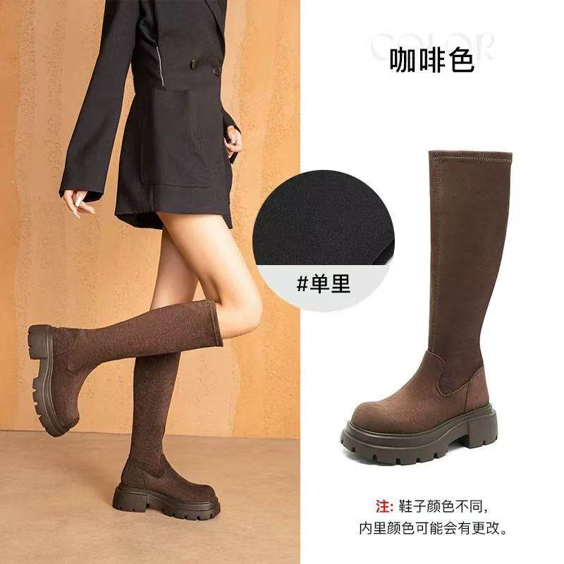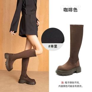 时尚 女鞋 休闲舒适百搭瘦瘦靴圆头套筒中跟女靴 新款 大东2024冬季