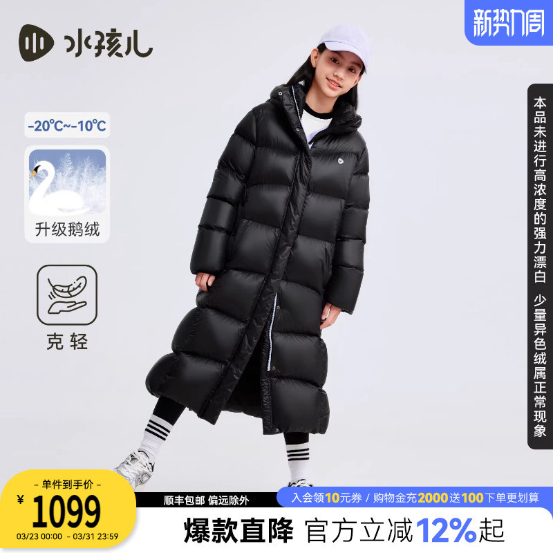 羽绒服女童热销秋冬新品 水孩儿加长款 大童防寒青少年厚外套 鹅绒