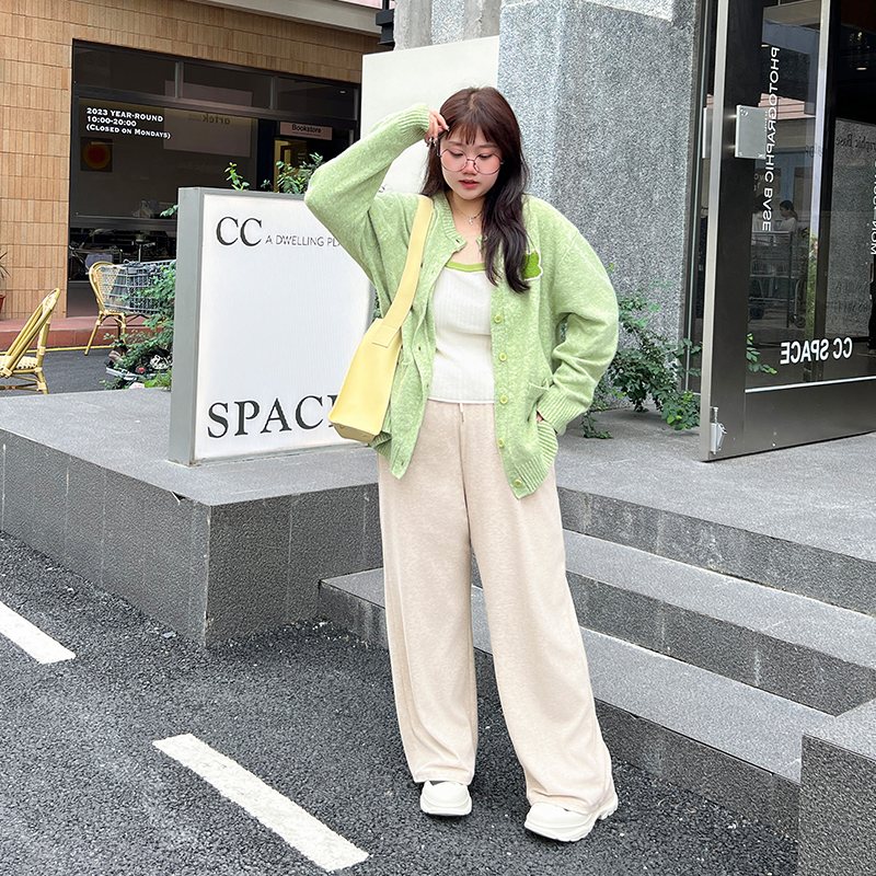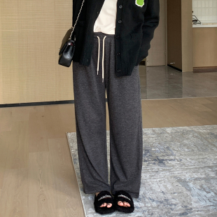 子 宽松垂感梨形身材显瘦直筒裤 灰色糯米休闲裤 女秋冬加绒胖mm大码