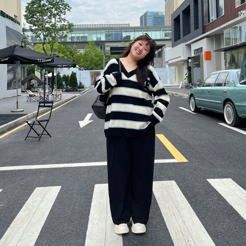 子 胖mm显瘦梨形身材宽松阔腿裤 格纹直筒垂感休闲裤 女秋冬加绒大码