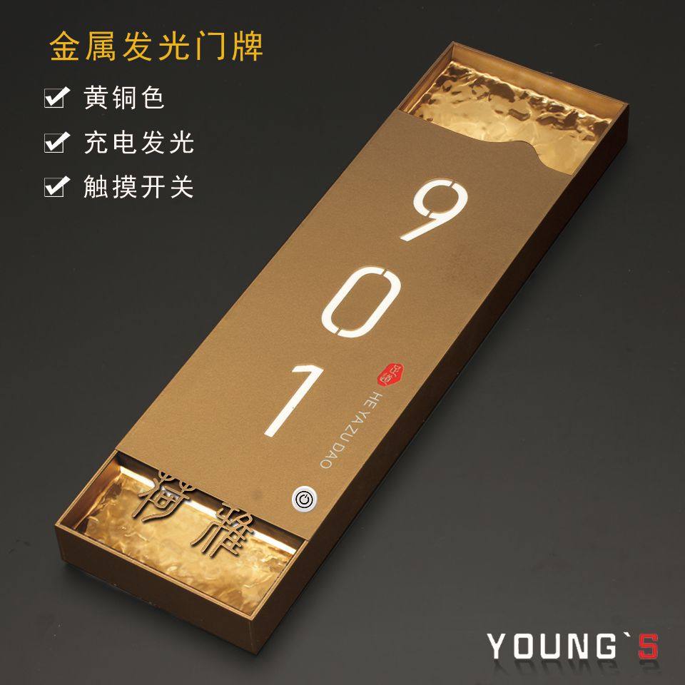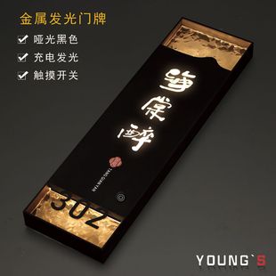 不锈钢棋牌室门牌轻奢创意发光酒店标牌订制充电餐饮包厢牌可定制