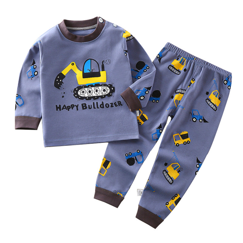 秋冬儿童睡衣纯棉100%男童工程车家居衣服宝宝挖掘机挖土秋衣秋裤