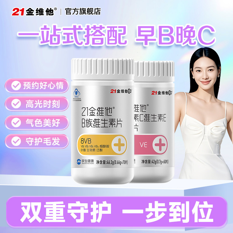 b族蓝帽保健 21金维他烟酰胺维生素C维生素E男女VC正品 早B晚C
