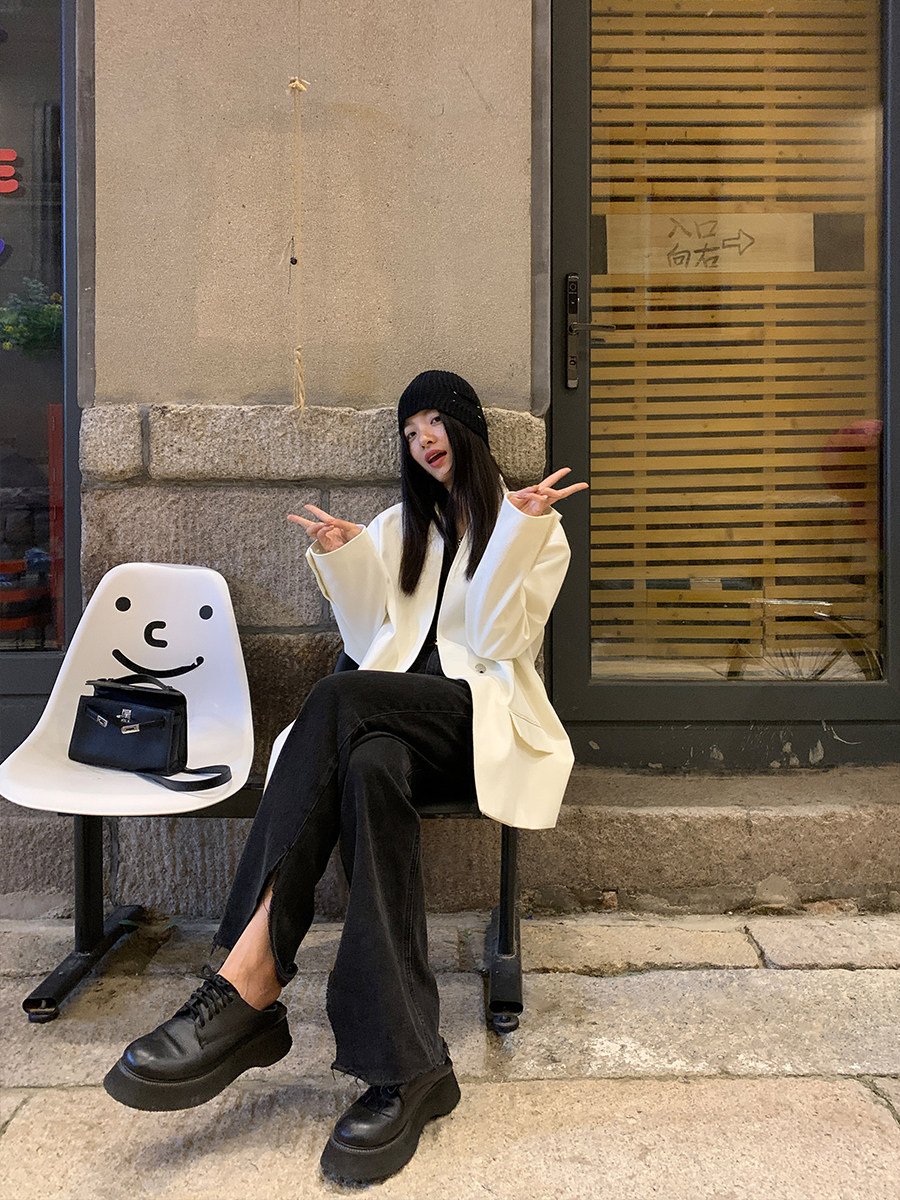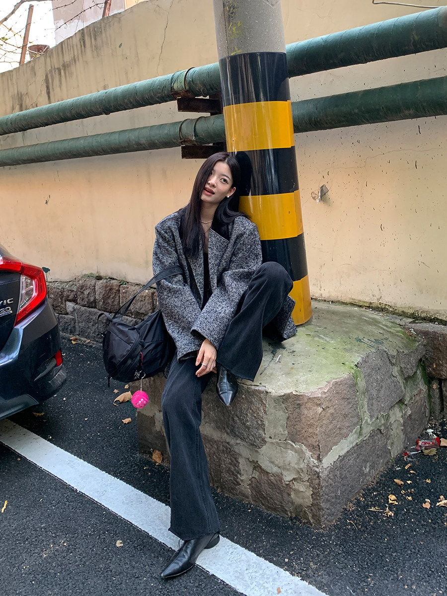直筒显瘦马蹄阔腿裤 女秋冬新款 烟灰加绒微喇牛仔裤 自留很难不爱