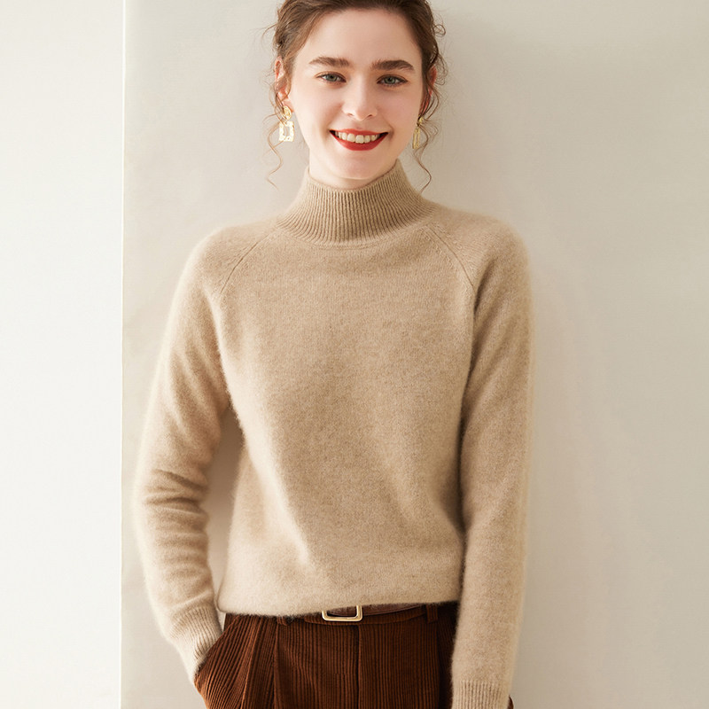 针织打底衫 品牌高级感羊毛衫 女半高领宽松毛衣秋冬加厚羊绒长袖