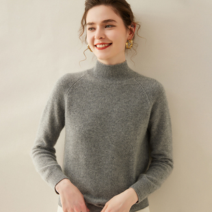 秋冬新款 鹿王羊绒衫 女士半高领平针纯色套头轻薄百搭打底针织衫