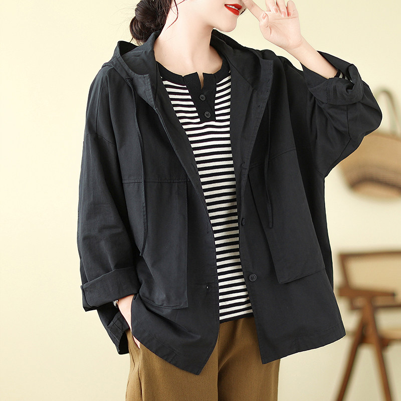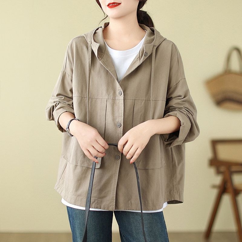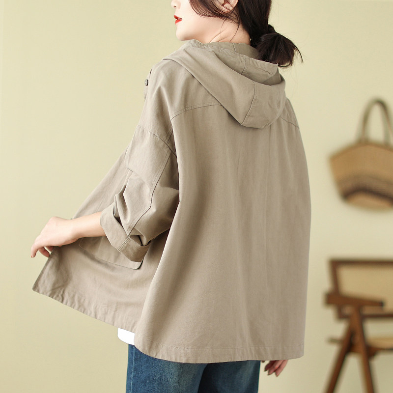 连帽工装 秋季 短外套复古港风设计感风衣宽松显瘦上衣夹克 女装 大码