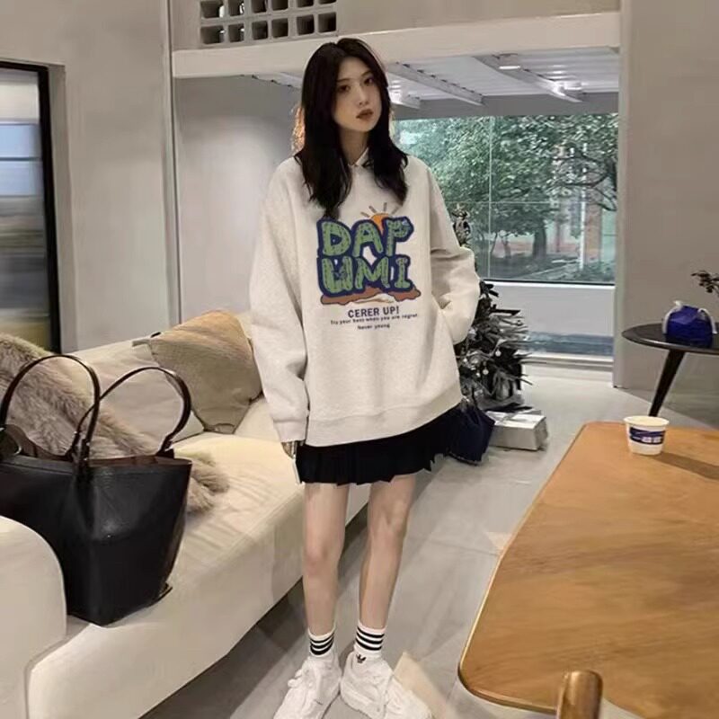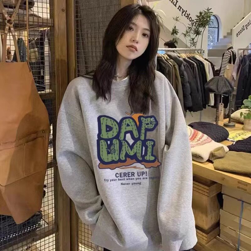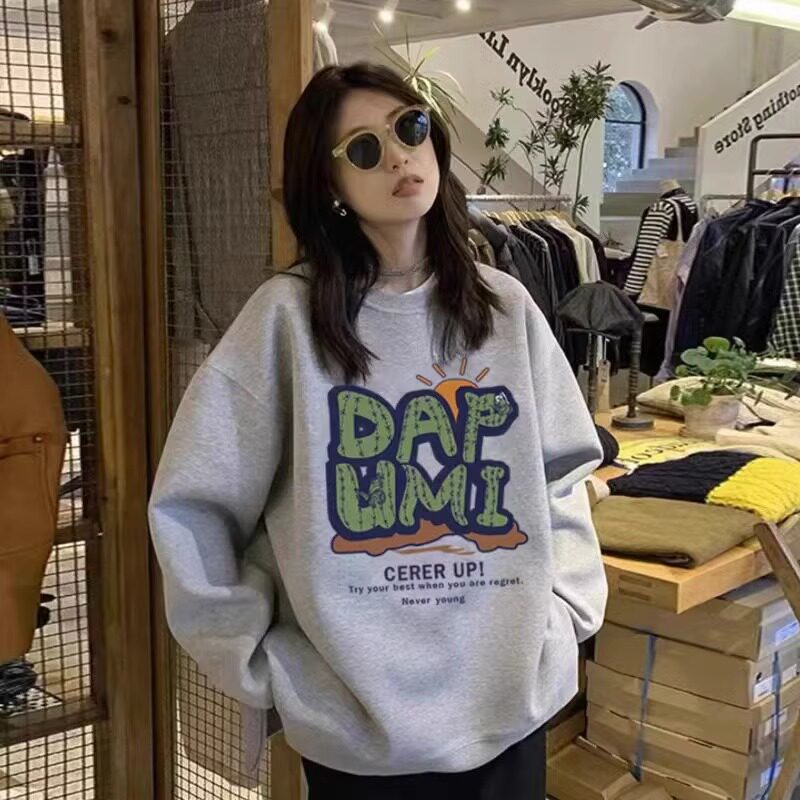 慵懒风宽松外套上衣 秋冬季 纯棉美式 复古vibe风卫衣女加绒加厚款