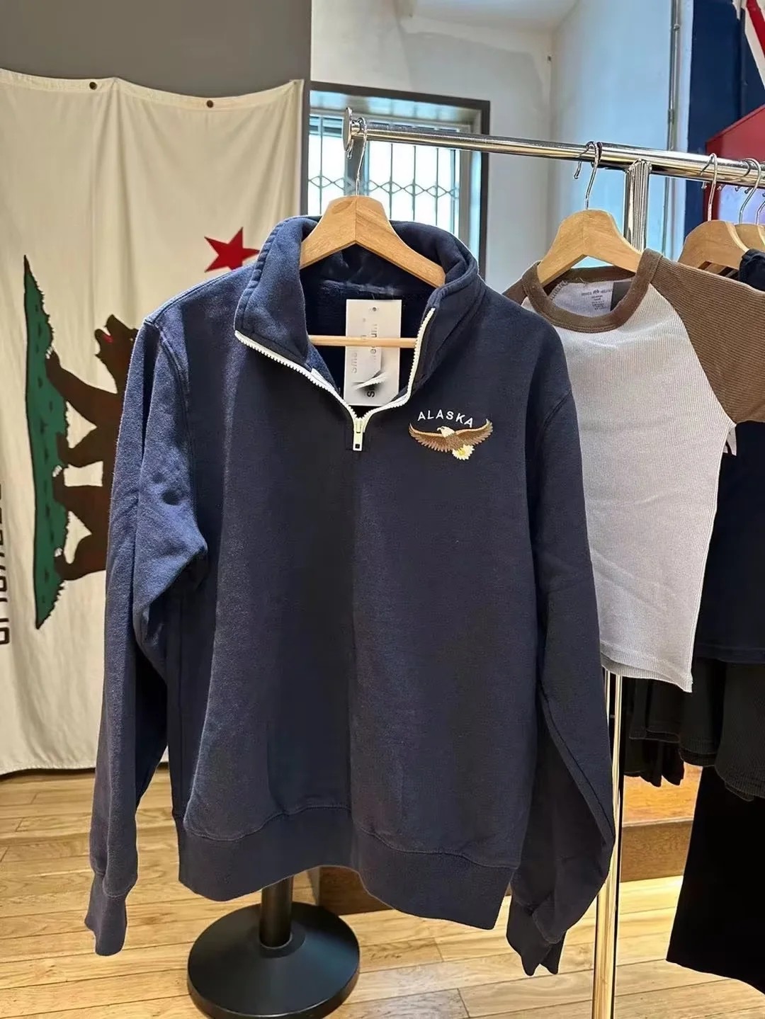 外套宽松上衣 复古老鹰刺绣半拉链套头卫衣bm长袖 Brandy Girl美式