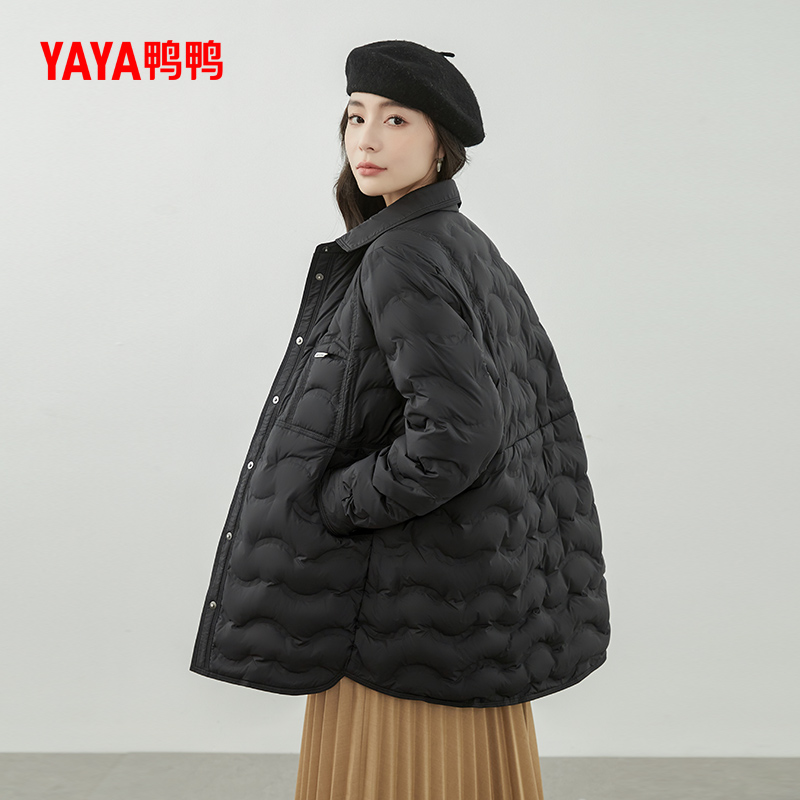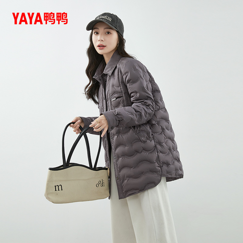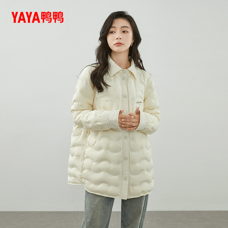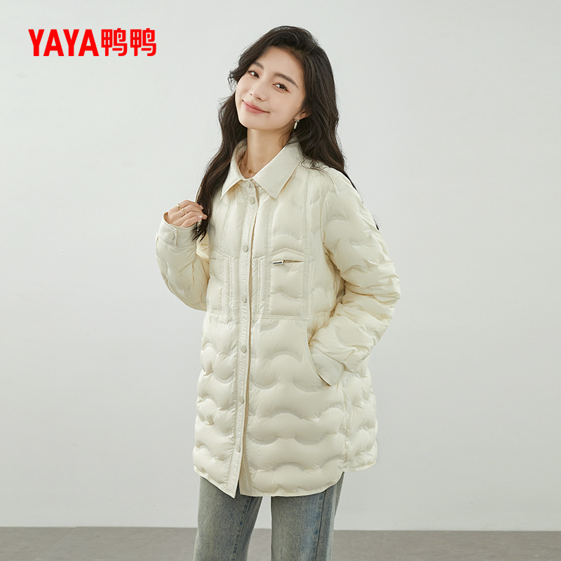 领轻薄韩版 衬衫 显瘦 中长款 鸭鸭官方小个子羽绒服女2023新款