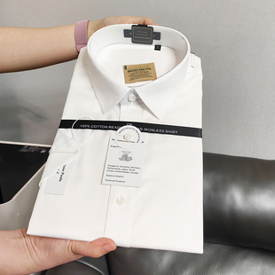 外贸铜氨衬衣 商务休闲正装 弹力白色免烫抗皱纯色全棉长短袖 男衬衫
