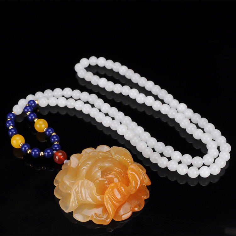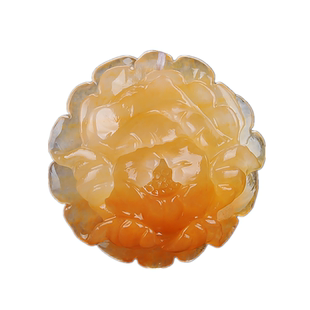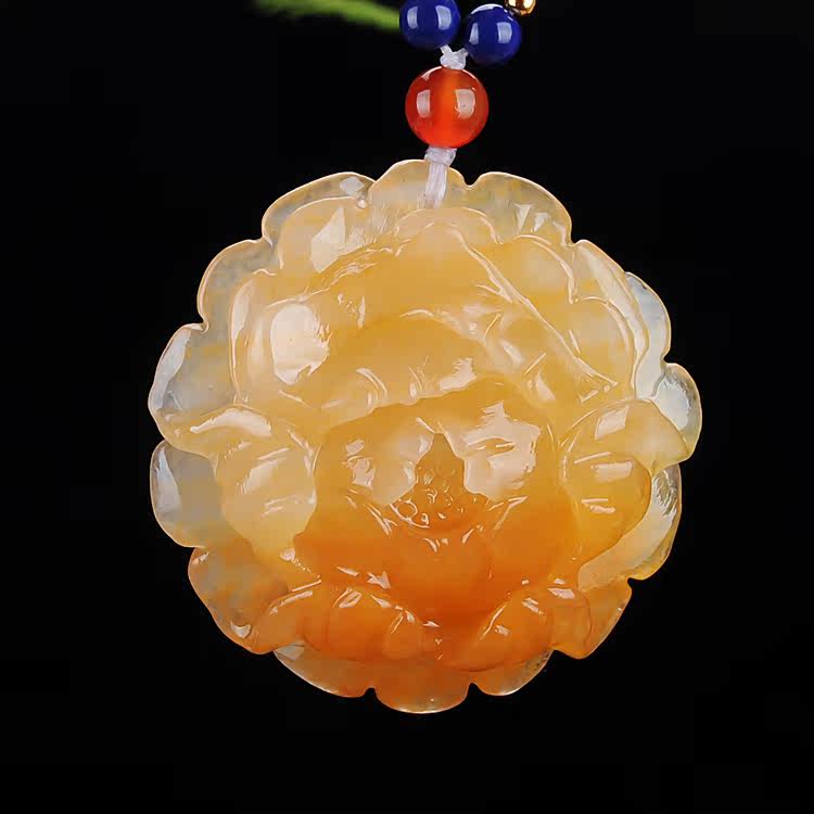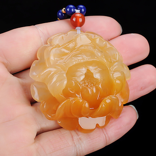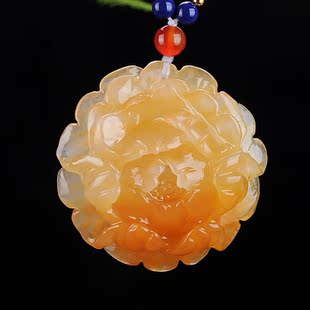 正品 富贵吉祥牡丹项链挂件精雕玉器毛衣链 黄龙玉牡丹花吊坠女款