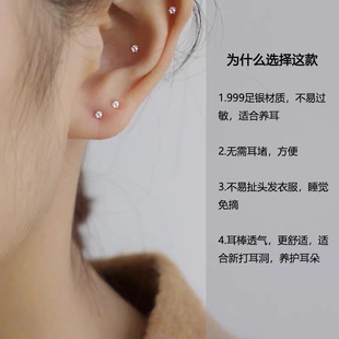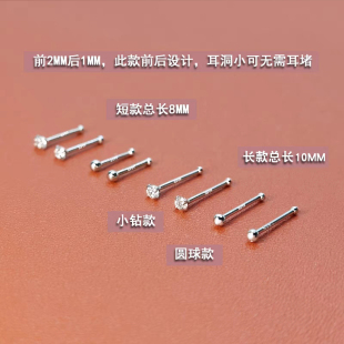99纯银耳骨钉耳蜗钉女双头养耳洞睡觉不用摘防堵针耳钉耳环耳饰