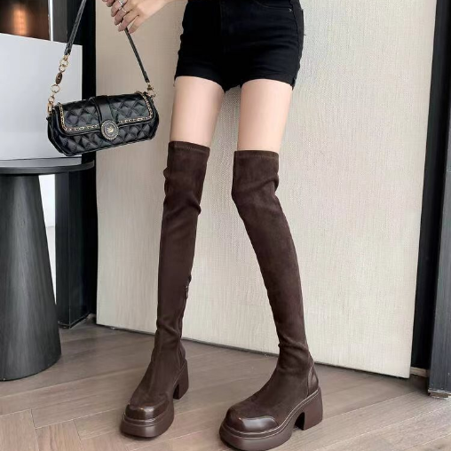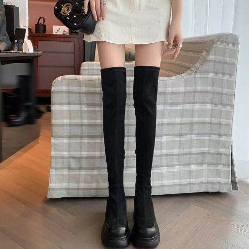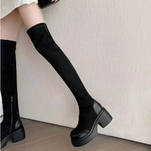 天美意厚底增高加绒过膝长靴弹力靴高筒时装 瘦瘦靴高跟短靴 靴女鞋