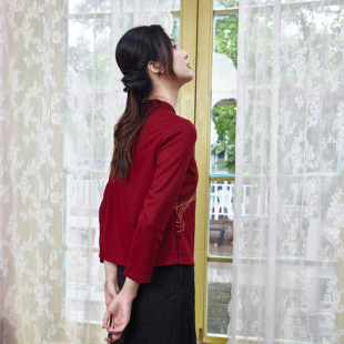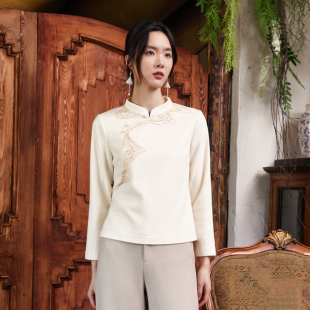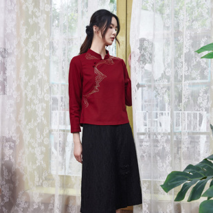国风复古女装 小立领时尚 珠绣旗袍上衣改良中式 布符秋冬新款