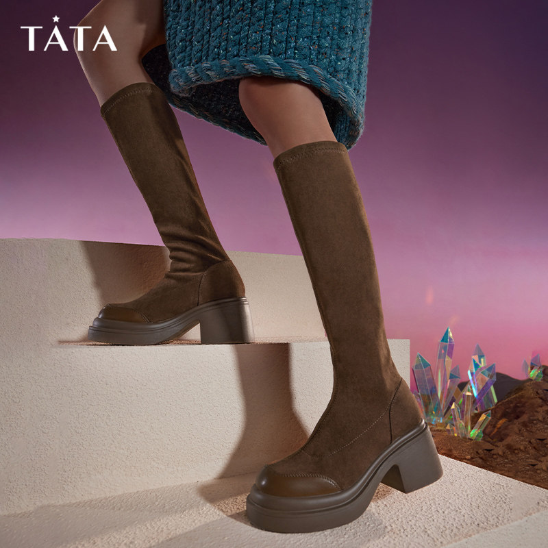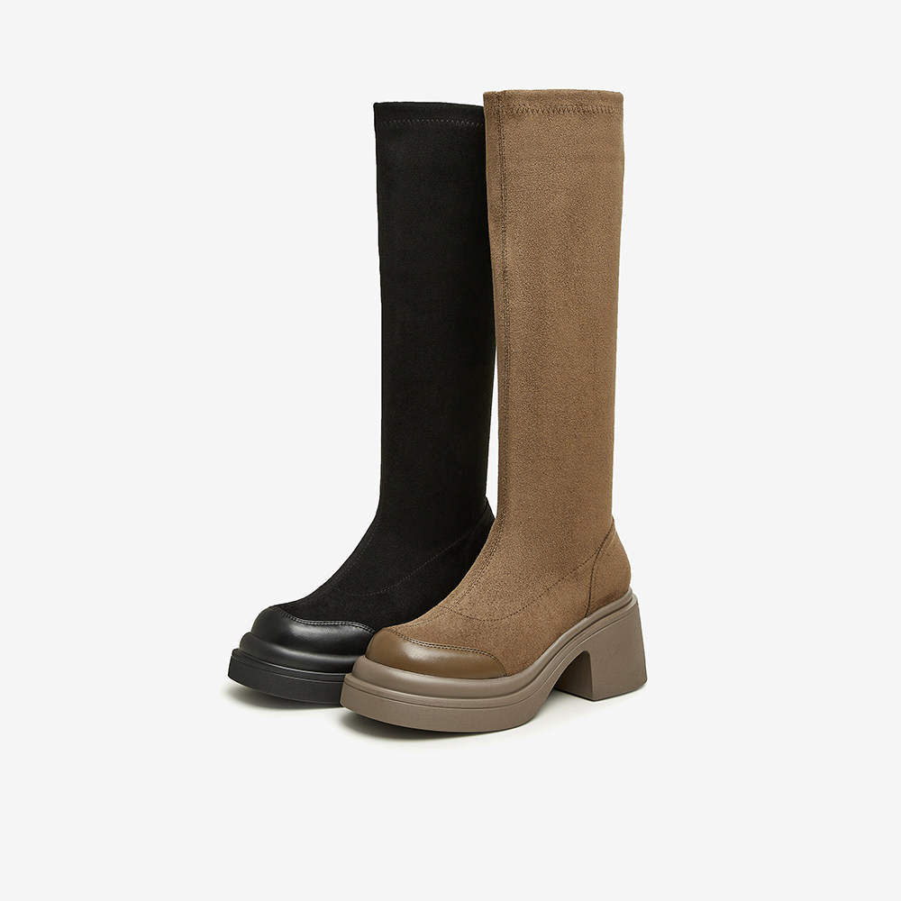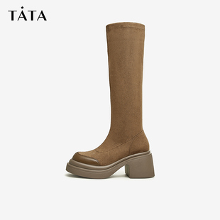 时装 千百度粗高跟弹力袜靴女2025秋冬新款 靴短靴子 静音系列