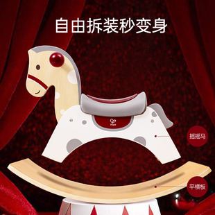 Hape二合一摇摇马儿童宝宝摇骑木制男女孩平衡板早教益智玩具1岁
