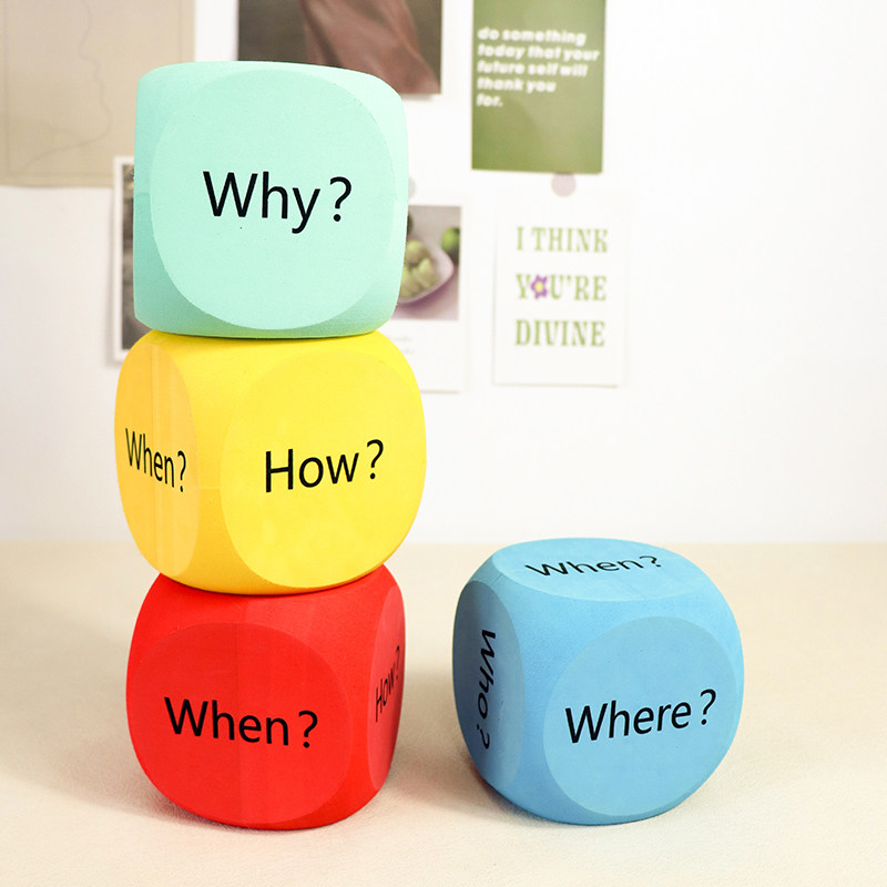 问题骰子课堂教具学英语疑问词儿童互动掷色子玩具幼儿园启蒙早教