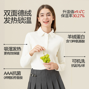 内搭叠穿职业装 女长袖 通勤极简衬衣 加绒高级感V领白色衬衫 秋冬季