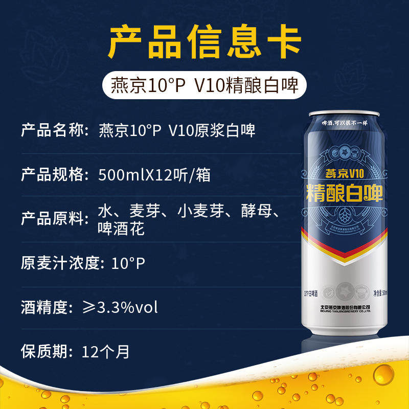 12听整箱高端品质国产 燕京啤酒V10精酿白啤500ml 明星同款