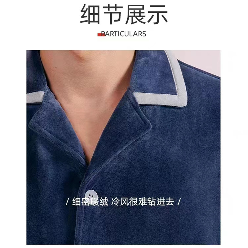 加绒保暖抗静电家居服 男款 芬腾睡衣男冬季 珊瑚绒三层加厚夹棉套装