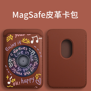 新款 14pro真皮质卡夹钱包配件插卡槽门禁卡p一体直刷 苹果magSafe磁吸卡包适用于iphone15promax皮革15卡套式