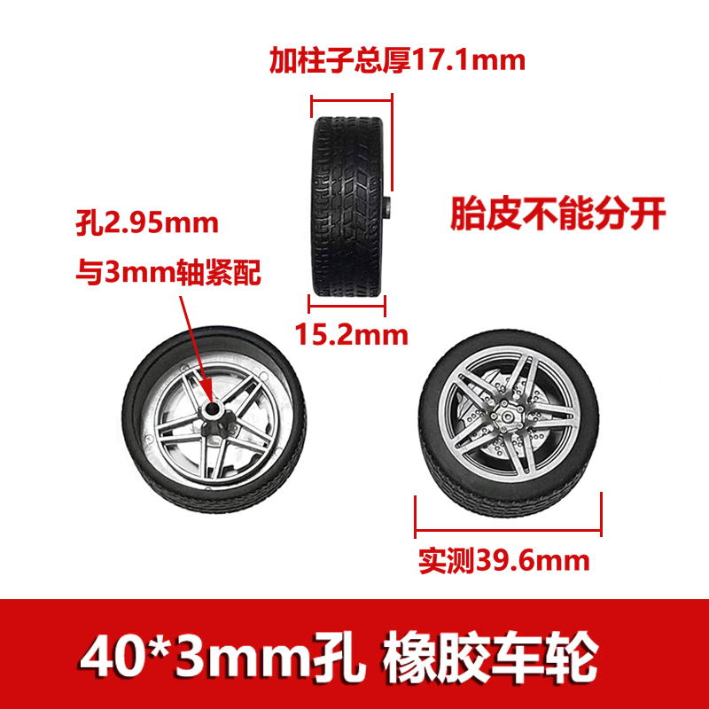 100mm车轴套装 儿童手工制作四驱玩具小车零件 3mm橡胶车轮