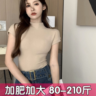 胖mm显瘦辣妹纯欲短款 大码 2026年新款 t恤女夏季 上衣潮 半高领短袖