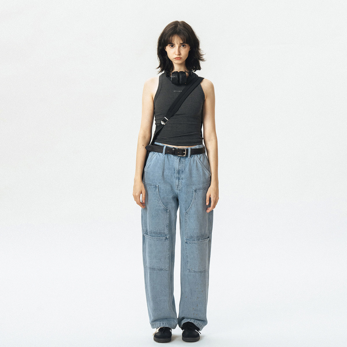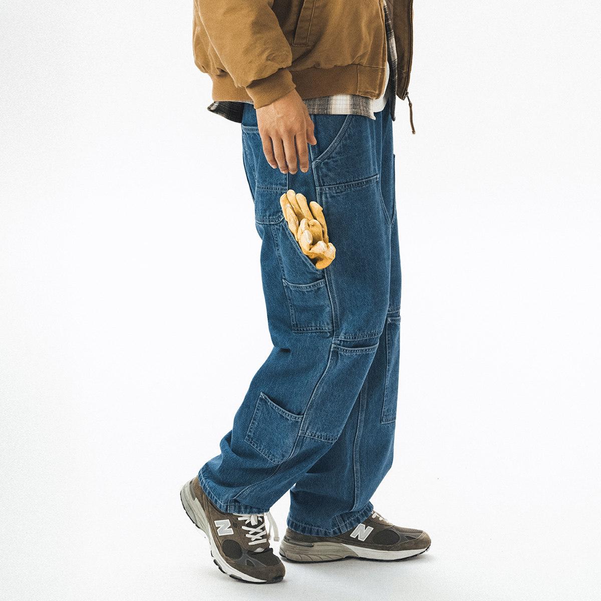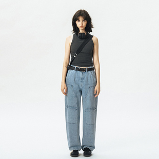 显瘦百搭长裤 新款 女2025秋季 现货复古水洗立体剪裁口袋直筒牛仔裤