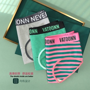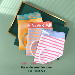 3条三角内裤 女纯棉中腰多巴胺条纹配色高弹宽腰带收腹抗菌裆大码