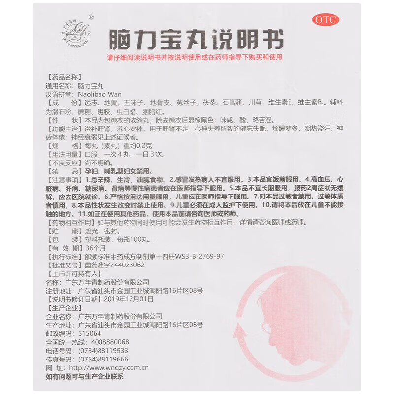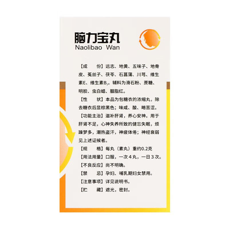 脑力宝丸 盒 0.2g 1瓶 滋补肝肾养心安神健忘失眠 100丸 万年青