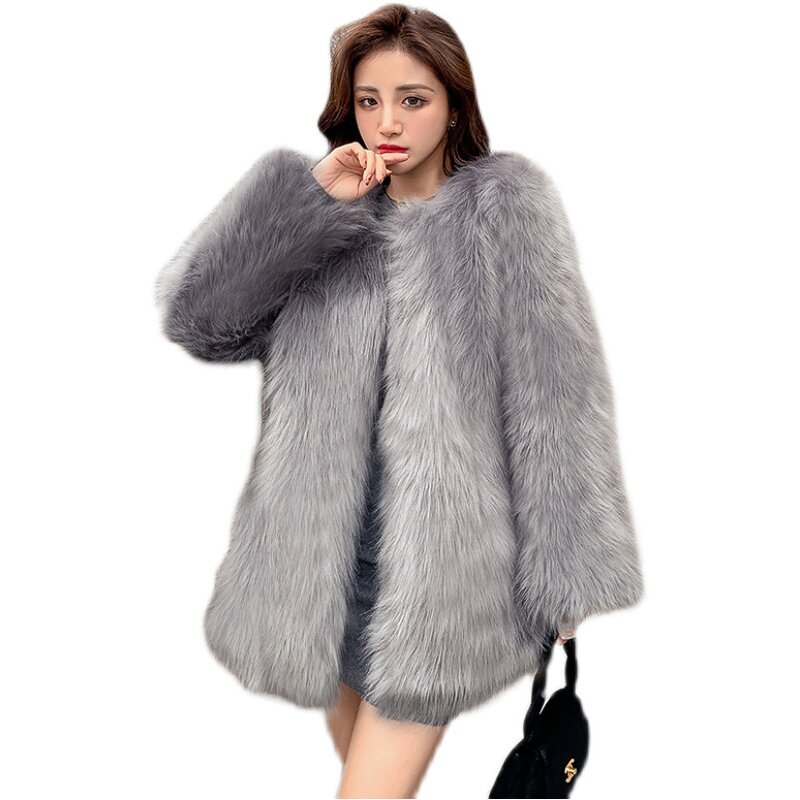 仿皮草外套女狐狸毛中长款 年轻毛毛衣潮 显瘦秋冬气质名媛加厚时尚