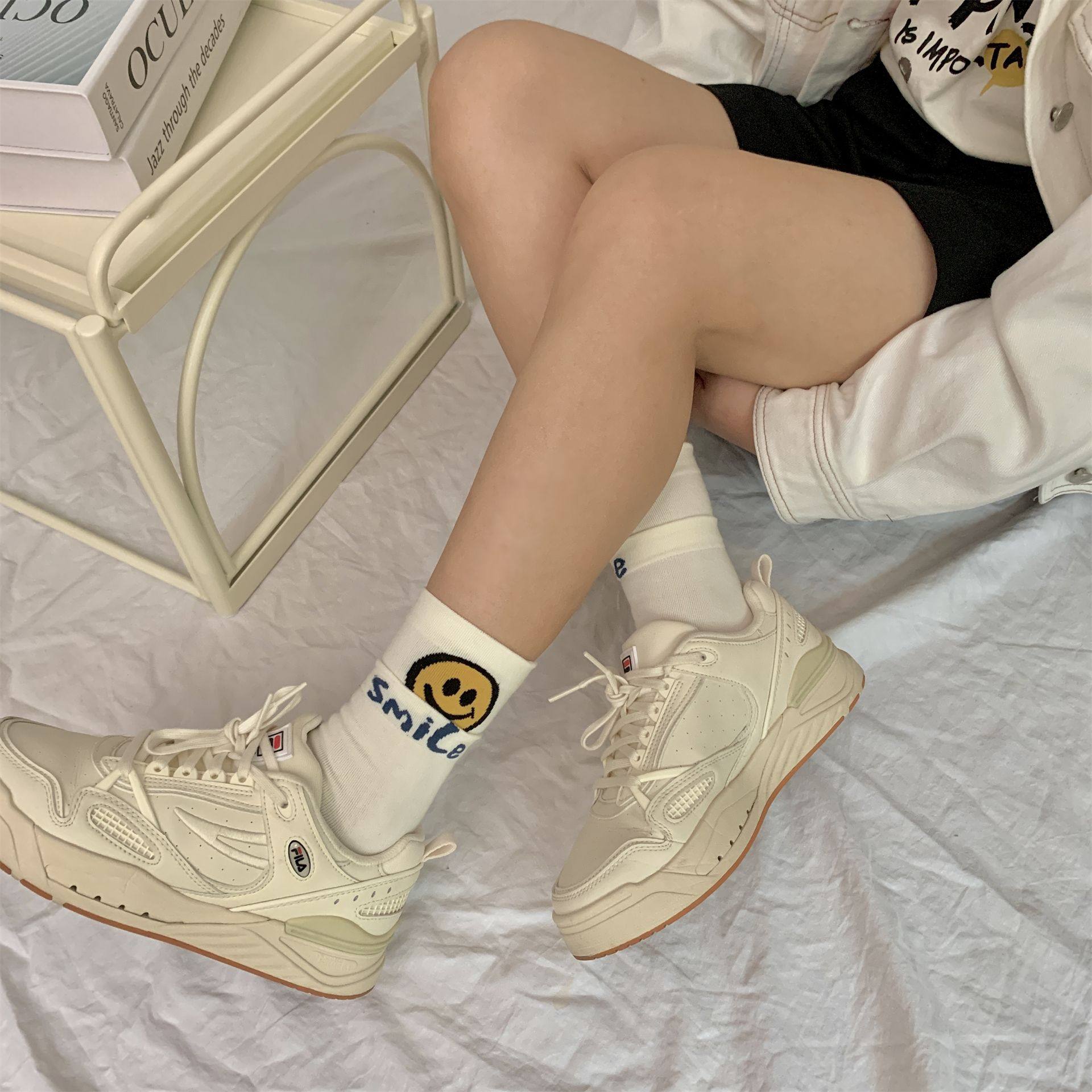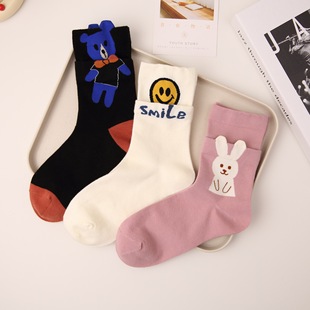 原创设计秋冬袜子女袜双罗口立体小兔棉袜假两件网红ins潮中筒袜