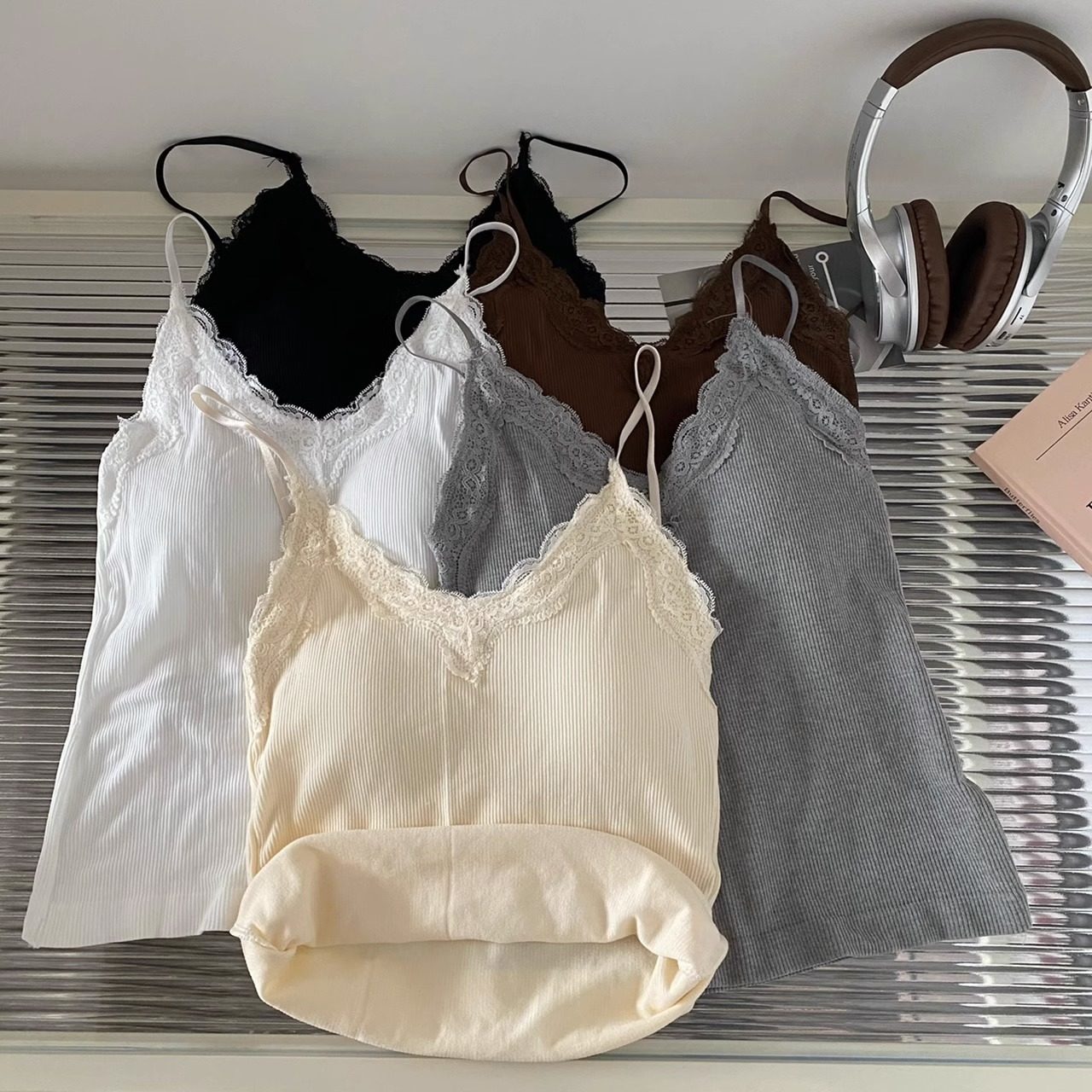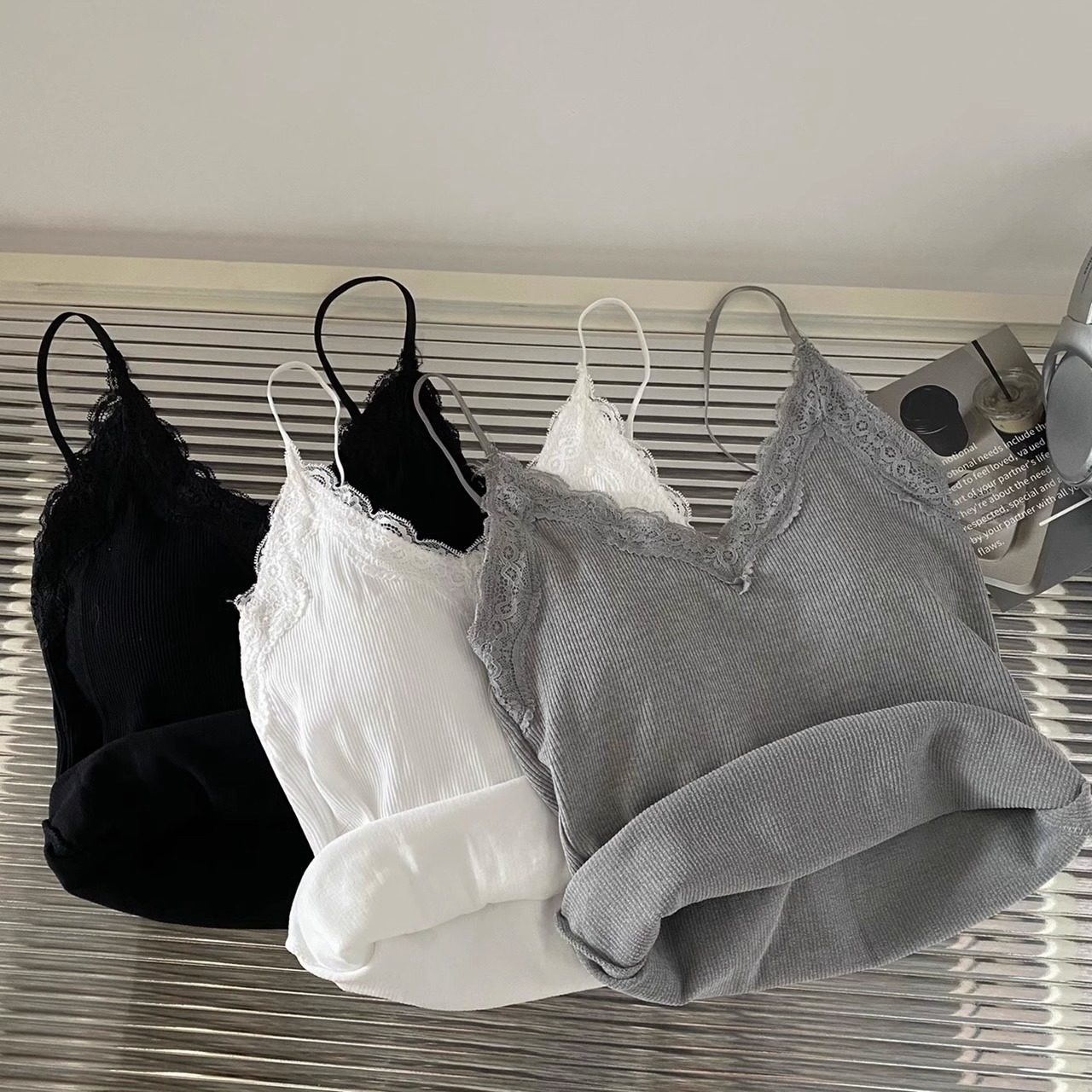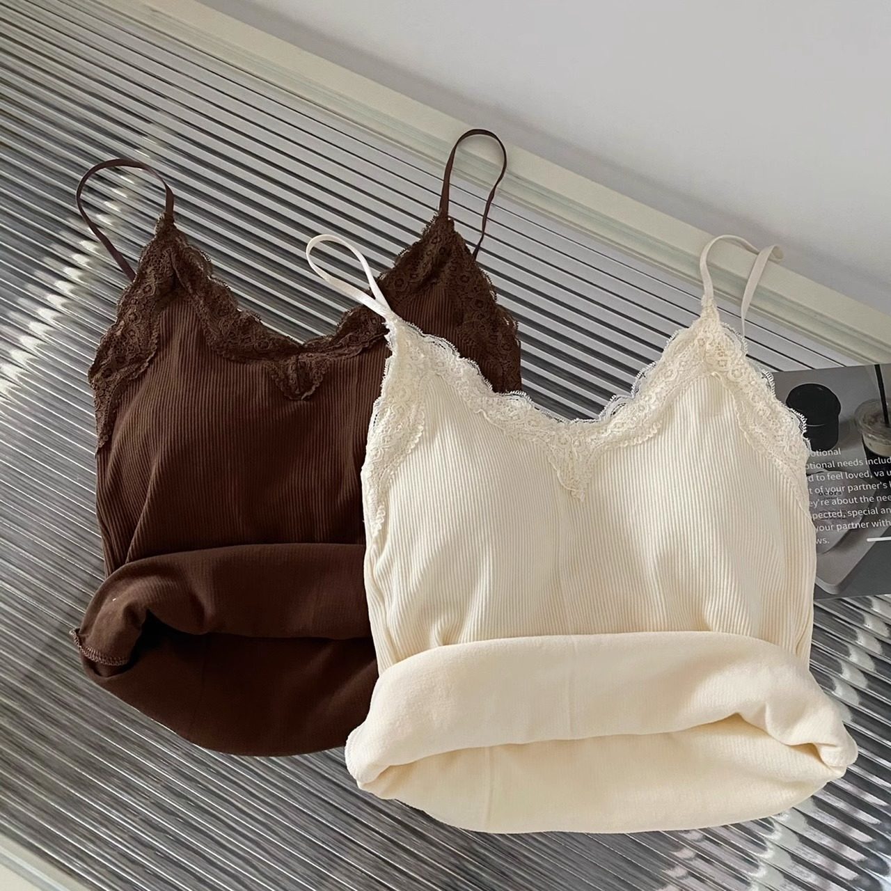 保暖吊带背心女秋冬加绒加厚内搭打底蕾丝一体绒上衣毛绒绒外穿
