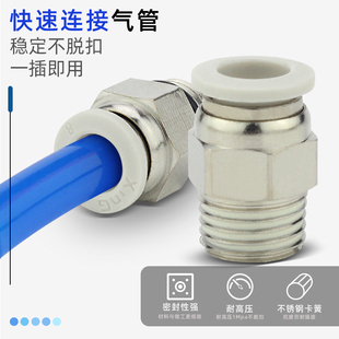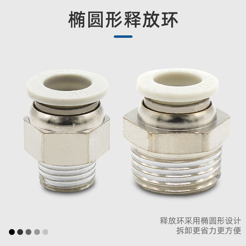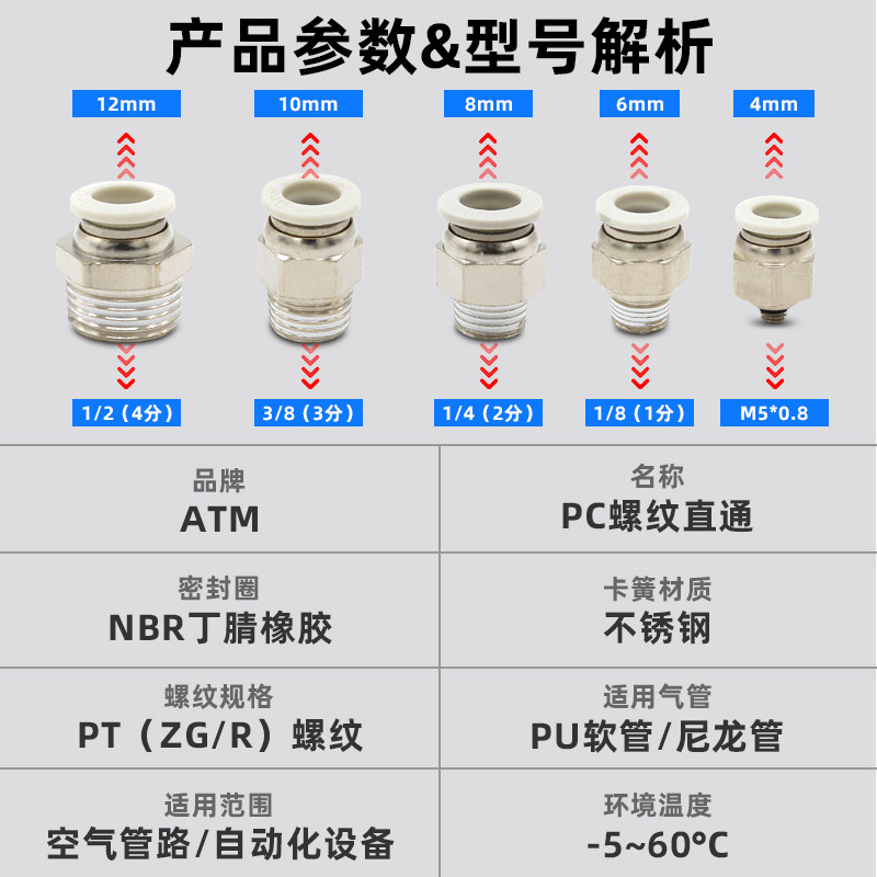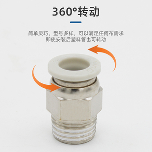 01白色气管接头6 4分气缸配件 气动铜接头螺纹直通PC8