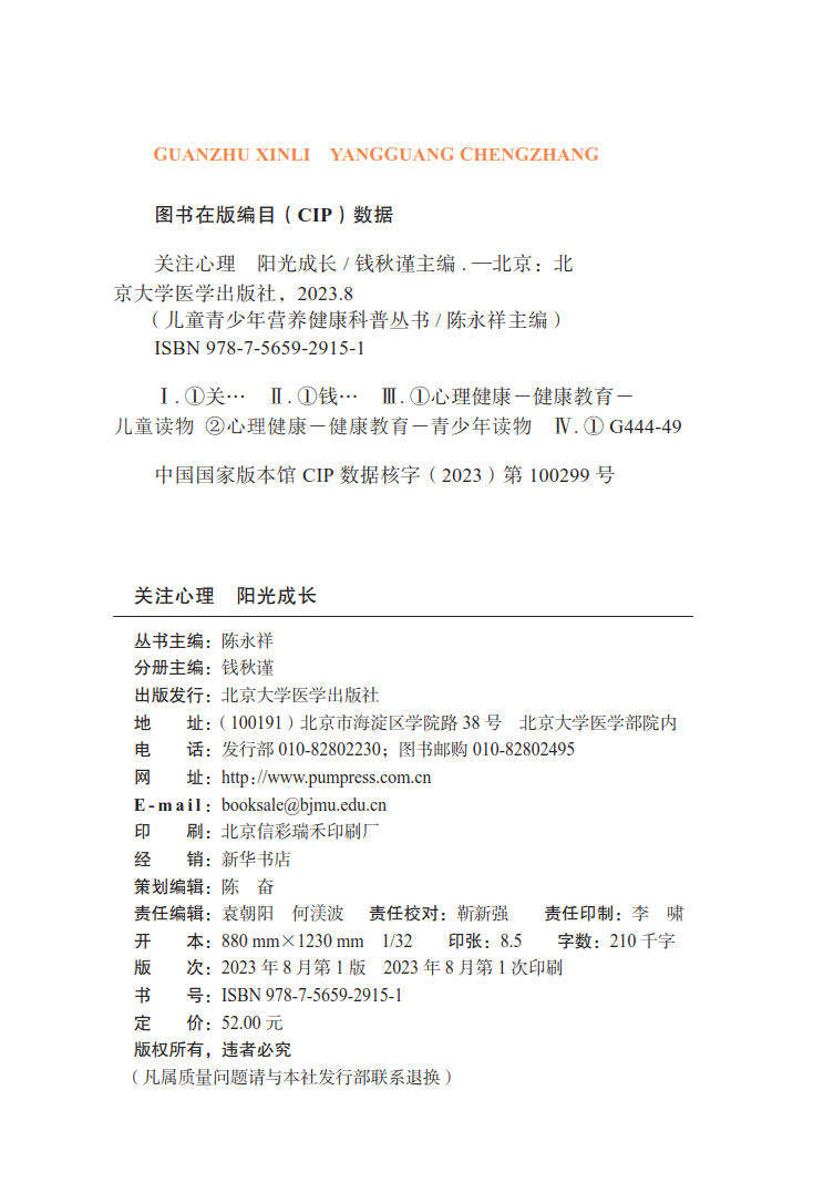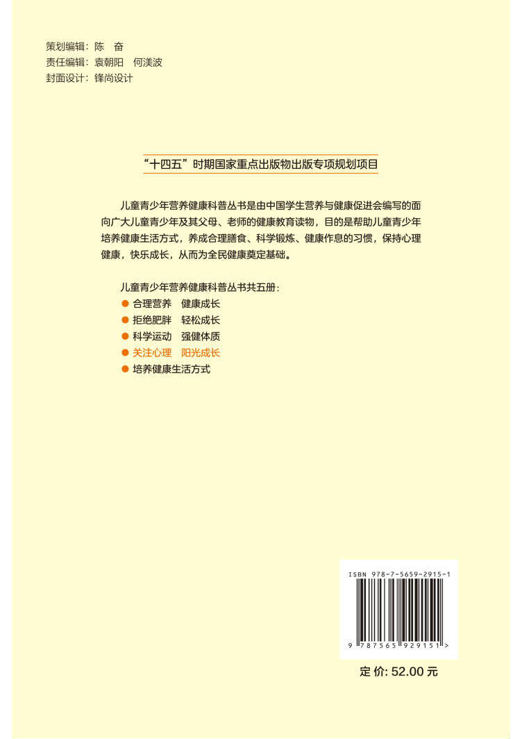 关注心理 阳光成长 社 平装 9787565929151 北京大学医学出版 儿童青少年营养健康科普丛书 主编 现货正版 钱秋谨
