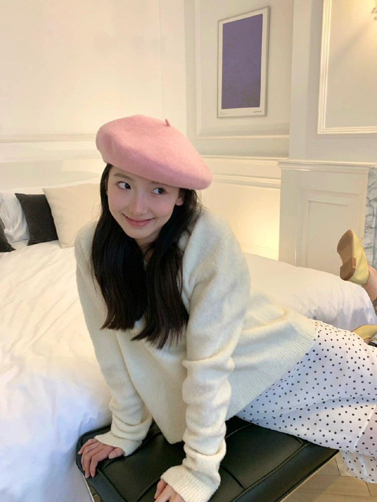 加厚保暖鸭舌防寒贝雷帽妈妈帽 针织毛线帽兔毛时尚 帽子女冬季 新款