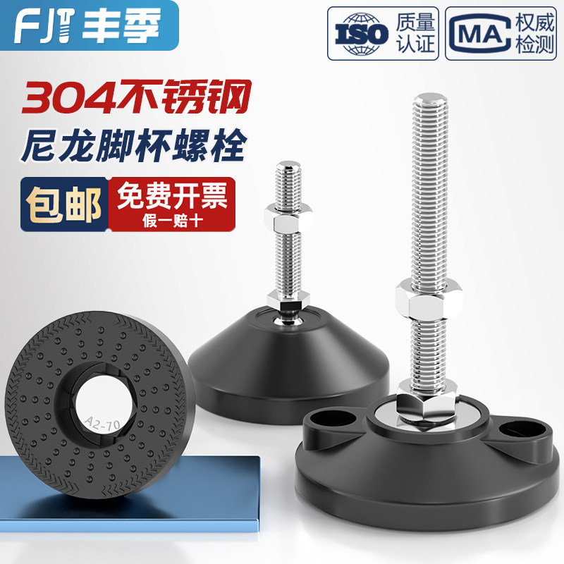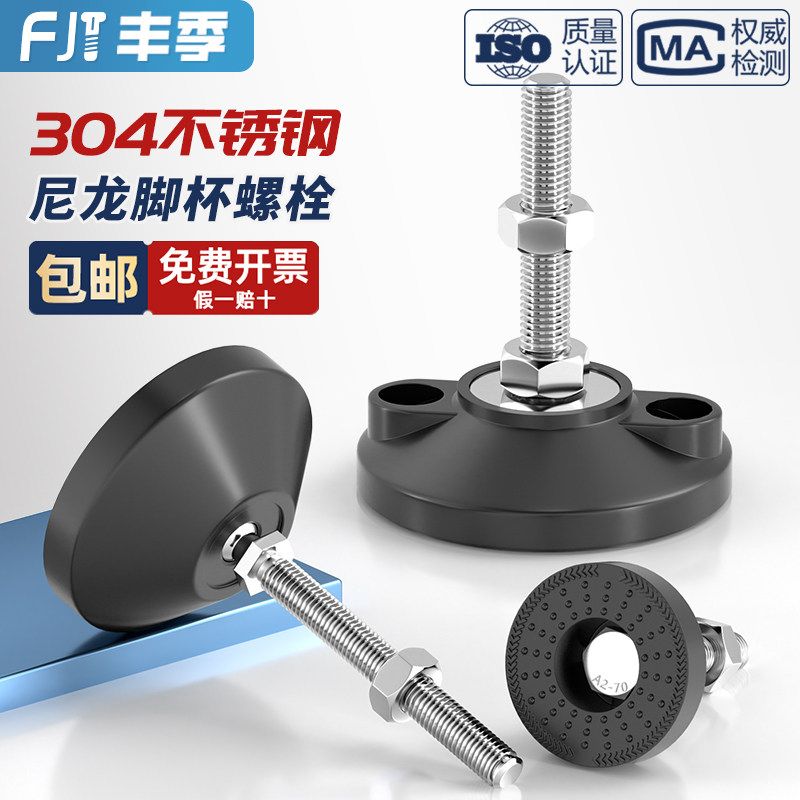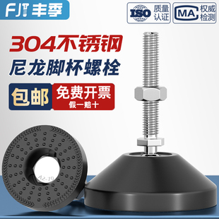304不锈钢尼龙脚杯固定地脚螺丝螺栓可调节脚垫支撑脚M8M10M12M16