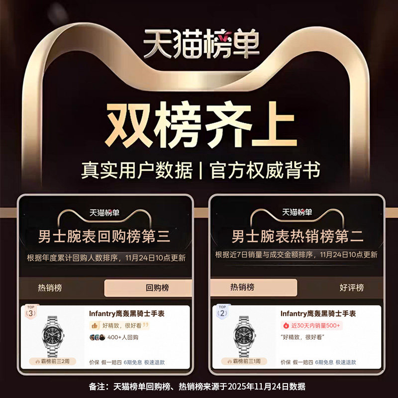 Infantry鹰轰黑骑士手表男款 百搭防水钢带石英男表生日礼物 时尚