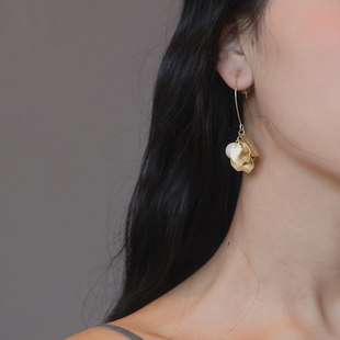 小众高级感白色珐琅耳扣耳环女法式 轻奢气质耳钉耳坠方形金色耳饰