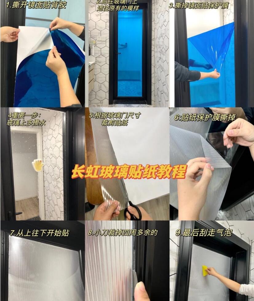 卫生间旧衣柜玻璃门改造小红书同款 浴室长虹膜玻璃贴纸透光不透明
