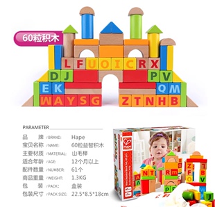 德国hape正品 积木婴儿童水性漆榉木可咬益智玩具 城市数字字母拼装