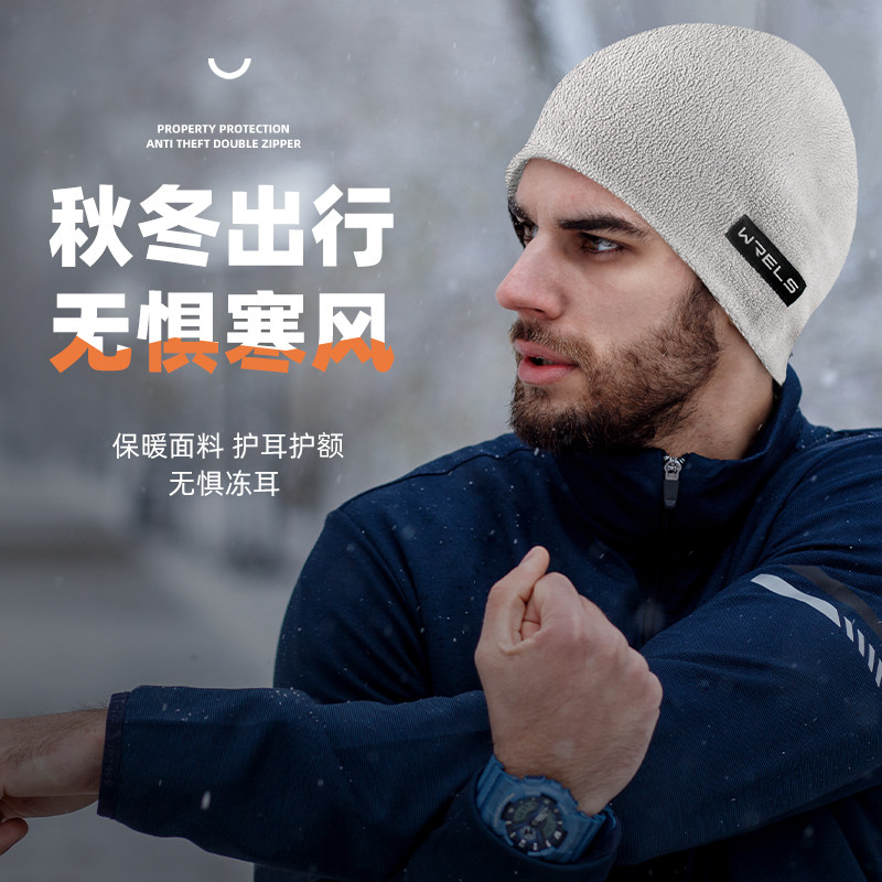WRELS 秋冬保暖帽抓绒帽男加厚休闲运动帽女男户外滑雪骑行防风帽