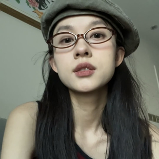 404 素颜平光眼镜凹造型女 店小框椭圆茶色眼镜架小红书网红同款