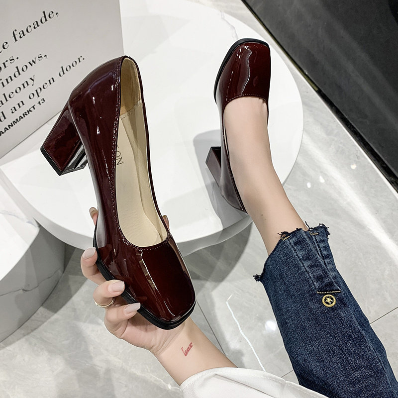 尖头高级感裸色漆皮单鞋 红色底高跟鞋 女浅口黑色性感细跟2025新款