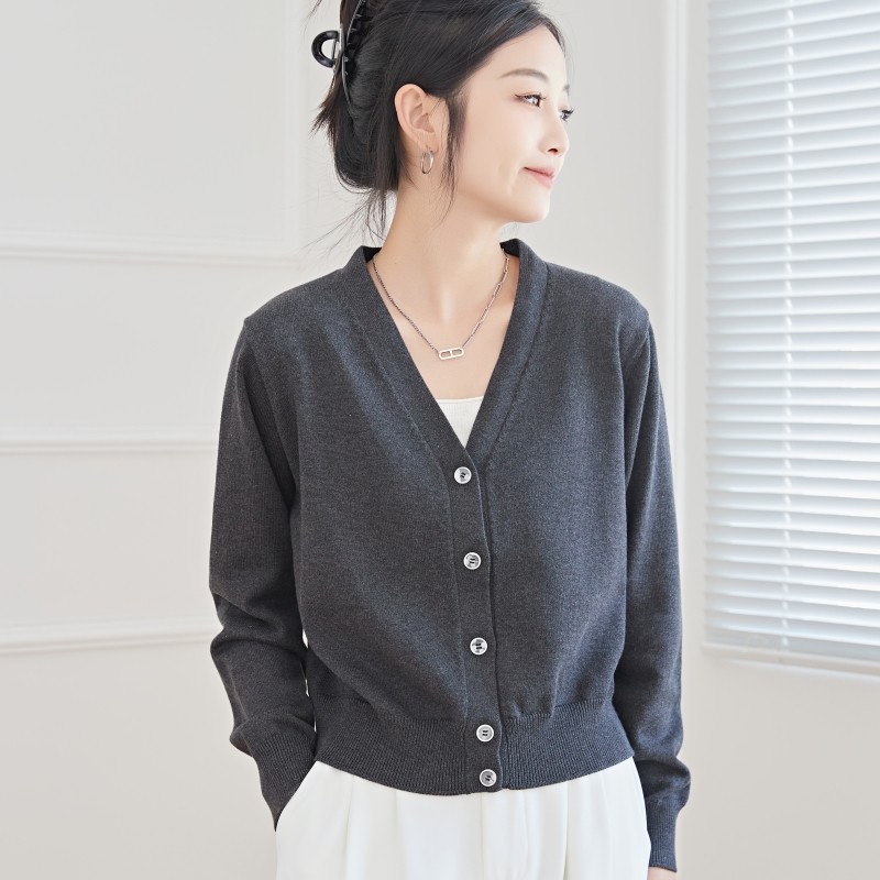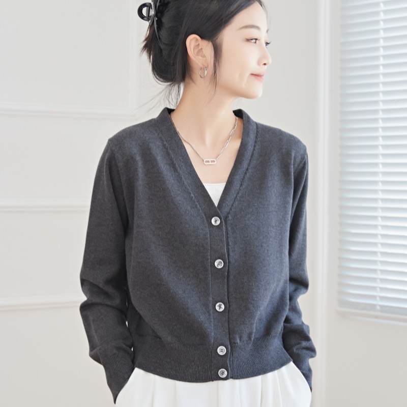 女纯羊绒毛衣针织打底衫 气质美学 100%纯山羊绒开衫 修身 秋冬 法式
