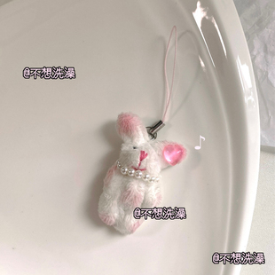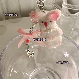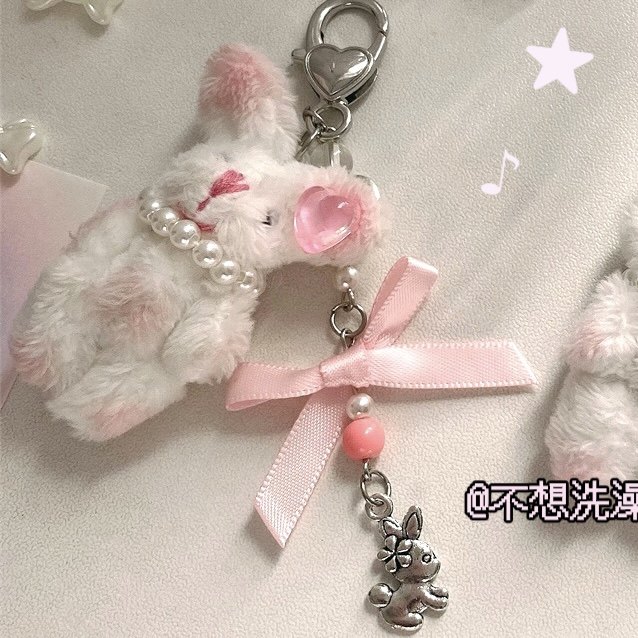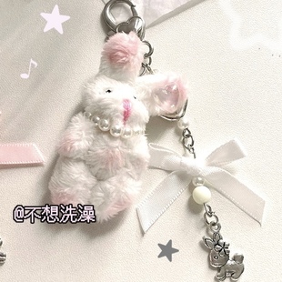 正版 死挂饰兔 可爱獭兔毛公仔小兔子汽车钥匙扣挂件迷你包包毛绒装